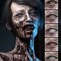 Rising from the grave to shamble into your renders, GP Genesis 9 Zombie Feminine HD is ready to terrify the heartiest soul. The hand-sculpted level 4 HD morph will take your renders to the next level. Highly detailed materials include dry and bloody skin with five different eye presets, including clear, cloudy, and blood-tinged.