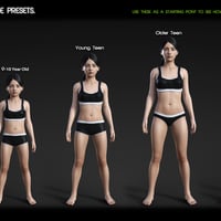 The morphs were created based on average human proportions and scale relative to age, so more accurate results could be achieved. Use the age presets, or simply create your own youth character by combining the morphs. Also included are head and nose neutralize morphs so you can blend in your favorite character faces with more control.