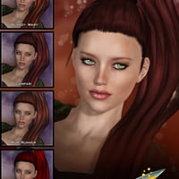 It includes 40 shiny and smooth textures for Regina Malorum Hair, in a rainbow array of colors that are named after alcoholic drinks. This 3D software set also includes new transmaps to change the hairstyle and a new UV set.