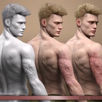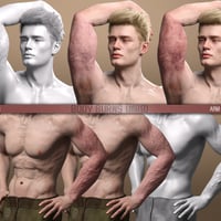 HD Body Burns for Genesis 8 and 8.1 Males is a collection of 13 body burn scars that cover the arms, shoulders, and neck, created through the careful combination of HD morphs, Geoshells, and LIE material presets for flesh texturing. In addition, we have included a mirror option of 12 of the scars for a total of 25 HD Morphs.