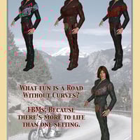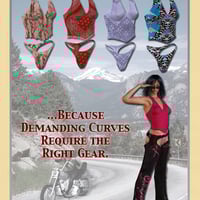 -Bonnie RaittSuit up and head down the road! She's got miles to go and she knows she looks HOT! From MAB and Will Dupré comes the much awaited set of leathers and duds fit for curves on the road. Dress her up or dress her down, she's still gonna stay a tall drink of something sweet in these clothes, but don't think these boots are made for walking, SHE WAS BORN TO RIDE!