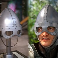 Nine hundred years ago, a variety of styles of Spangenhelm were used across the continent, riveted together out of plates and strips, with nasal protectors, 'spectacles', or both.