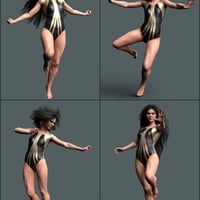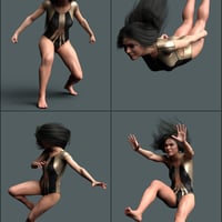 This is a set of twenty action poses designed to bring a sense of dynamic motion, grace, and power to your runtime. Included are presets of each pose for the Genesis 8 Female base figure and Teen Jane 8.