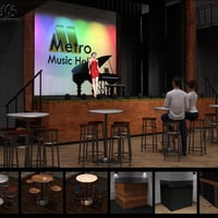 IDG Metro Music Hall includes over 250 built in-house lights with custom designed IES profiles covering the entire set including a set of fully functional emergency lighting. The set includes lighting presets to quickly adjust all the lights in the main hall, backstage and basement areas. Pretty much everything you'll need short of specialized stage lighting. While designed as a completely stand-alone set, IDG Metro Music Hall was also designed to integrate seamlessly with the companion IG Stage Lighting set.