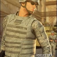 Ready for action! The perfect complement to the U.S. Army ACU (Army Combat Uniform) for M4, the Infantry Combat Equipment consists of: conforming Improved Outer Tactical Vest body armor, a smart-prop Army Combat Helmet, smart-prop sunglasses, smart-prop M4A1 carbine, smart-prop groin protector armor pad, and three different sets of load-carrying webbing. The body armor has 10 MAT files to change name and rank, and a choice of two different unit insignia - 4th Infantry or 82nd Airborne. Two starter poses for Michael 4 are also included.