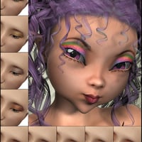 This producft requires DAZ Studio 3.1 or higher. When applying some of the make-up options seams will appear. This disappear when rendered. This product will work in Poser 8 and under. Due to python scripts incompatibility with poser 2012 -2014 - Included in This Pack: