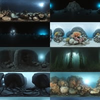 Iray Ocean Scenes is a collection of both underwater, and above water sea-based HDRI environments. The environments use various reflectors and VDB volumes to better merge your characters/props into each scene, but the HDRI domes can be used independently. Each scene has cameras place at various angles which would cover a large ship for the above water HDRIs, but you can easily move the camera to accommodate smaller boats. The underwater scenes contain cameras at suitable angles for a diver or marine animal, but again, you can shift the cameras around to accommodate a different subject. There is also some bonus shark VDB blood, created for one of the promotional images. Each HDRI is exported from blender at 8k, and 32-bit depth.