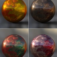These shaders resemble an iridescent metal surface with beautiful patterns that can be used in jewelery, fantasy props, metal surfaces, and many more.