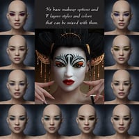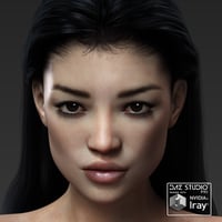 Izanami is a delicate Asian beauty for Genesis 3 & 8. Her textures are based on Genesis 3 Female UV's and she comes with natural and fantasy makeup presets. Both Iray and 3Delight material presets.