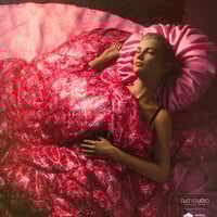 The bed prop set contains a bed base and back with 3 shaping morphs and a mattress sheet prop with 3 folding morphs. Every bedding set includes a set of paired pillows and a cover. Bed morphs and bedding morphs are located in the group node now - one dial (in Parameters Tab - Actor/Morphs) and the bed changes its shape, one dial, and cover and all pillows move to the right place for the Victoria 8 poses. There are two different cover drapes for each Victoria8 pose.