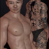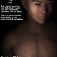 Jinn’s textures include two head maps, a detailed un-scarred face and a face scarred from a battle long ago. Eight Kabuki inspired face paints, four with traditional white base or four without. Eight eye maps, four colors with or without highlights. Last but not least, gorgeous body maps with or without detailed Irezumi inspired tattoos as well as options for scars or no scars!