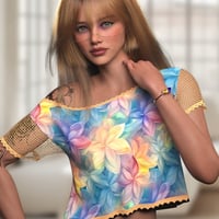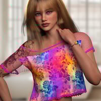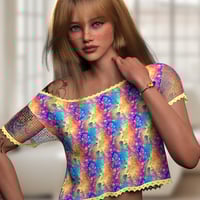 Stylez 3 is a texture add-on for the Off Shoulder Midriff Tee in Daz Studio, featuring 12 vibrant new colors and patterns.