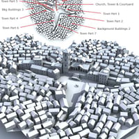 - Additional props populate the scene and can be turned on/off with a single mouse click per town part: