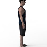 Lee Male Beach wear is the Lee male figure with Action Guy Hair, wearing sunglasses, tank top, shorts, underwear, and sandals. All models are fully textures. There are five texture sets for this outfit.