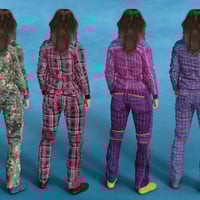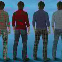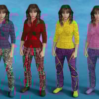 Four multicolored textures are included for the Shirt, Pants, and the Clothing. Also included are 8 one-click presets. Please select the Wearable or place all three items (Pants, Shirt, and Clothing) on G9 before you apply any preset.