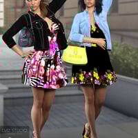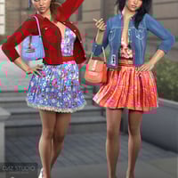 The trendy look of a jeans jacket paired with a sundress, sandals, and a purse make up the Linley Outfit. With six coordinated textures, your Genesis 3 Female(s) will sail into spring and summer with this great look.