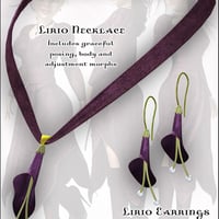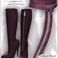 This addition to Lirio for V4, a 3D Gothic-inspired outfit, adds Elite, Aiko 4 and the Girl 4 fits. The set includes a dress, belt with long ribbons, boots (and matching foot poses), necklace and earrings. It comes with DAZ Studio settings.