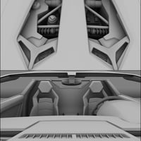 The suspension is rigged to mimic the push rod suspension system found in most super sports cars and race cars. Additional pose controls were created to allow animators to rotate all the tires at once and swing both mirrors in at the same time. The windshield wipers have bones but are locked in place. The bones are there for any animator who wishes to animate them.