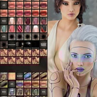 Adrienne come with two custom crafted skins by Fred Winkler Art and Lyoness. The first set contains 10 sexy and smoky eye shadows and matching lipsticks and fashionable fingernails. The second set is a full cyborg with four faces including eyeshadow, lips, and cyber nails. Also there are six iris colors and two cyborg eyes. There are also all in one click presets for all makeups and cyborg faces.