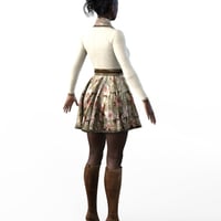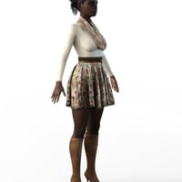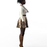 Lynsey First Date Outfit is the Lynsey Figure with the Krayon Hair, Scarf, Top, Skirt, and Boots. All models are fully textured.