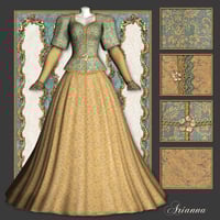 Every fairy tale ending begins with a fair maiden. This Digital Couturier "Spectacular Single" begins the fairy tale with Arianna, adorned in bracade and damask in shades of gold and teal.