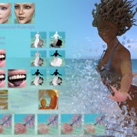Marina Mermaid is the most versatile character in this set. She has 19 material options, 17 2nd layer options and with the 7 different opacity masks for the 2nd layer, you can create hundreds of different looks. As an easy start, there are 15 sample presets using the 2nd layer. Do not forget to load the 2nd layer before applying them.