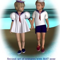 - Second texture set for Sailor Dress, Sailor Shirt, Sailor Pants and Sailor Collar with MAT pose files (.pz2) for applying textures to the figures.