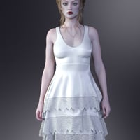 MbM Frivolity Dress is a playful yet elegant dress for Genesis 9. It features a multilayered skirt with delicate lace trimming and a simple sleeveless bodice.