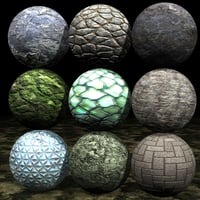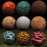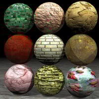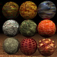 52 Hi-Res Photo based materials for Bryce utilizing Color, Specular and Bump maps.