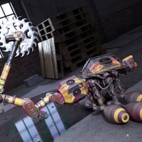 A mech bug inspired by a scorpion, fully rigged with three texture options and emissives.