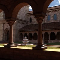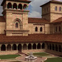 The warm Mediterranean style is a lasting classic. This set can serve as the courtyard a Renaissance castle in Italy, an 18th century California Mission or the a modern library in Spain.