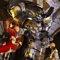"Shore there is, kid. Next we got th' Steel Golems. These guys is tough as all getout, and kinda slow. Ye mighta seen 'em on either side o' the door to the palace when we went to th' capital."