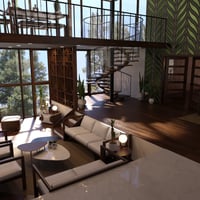 The lighting solution is a recessed light that comes with a "ceiling builder" rig that lets you scale the edges of the surrounding mesh to fill your ceiling to your needs without needing to boolean the mesh to create space for the lights! Instead of arches, this set comes with two different room dividers, one being wood columns, the other being a shelving unit that can store your decorations and belongings. Use the wood columns on the ceiling to give your room a different vibe!