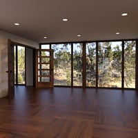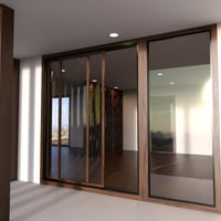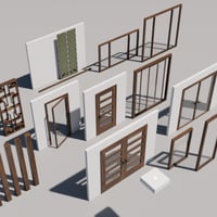 This set opts to use one wall mesh that can be scaled to fit your needs with a standard 240cm height and includes a 300cm long baseboard that can be used as a separate mesh if needed. A 100cm wallpaper asset with 4 different textures is also included, which can be tiled to create a seamless wallpaper across an entire room. Glass paned single and double doors are included in two types, one paneled and one full glass pane. On top of this, a sliding patio-style door is included to give you access to your backyard!