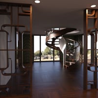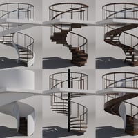 The feature piece of this pack is of course the spiral staircase, which comes with options to match most things included in the Stair Builder and is made in the same way as that pack. Pose presets are used to hide/unhide elements in the rig to quickly swap between variations. Included are also a few new additions specific to the spiral staircase, like a metal pole and supports, or thick wall "railings" to create more closed-in stairs for those scared of falling over.