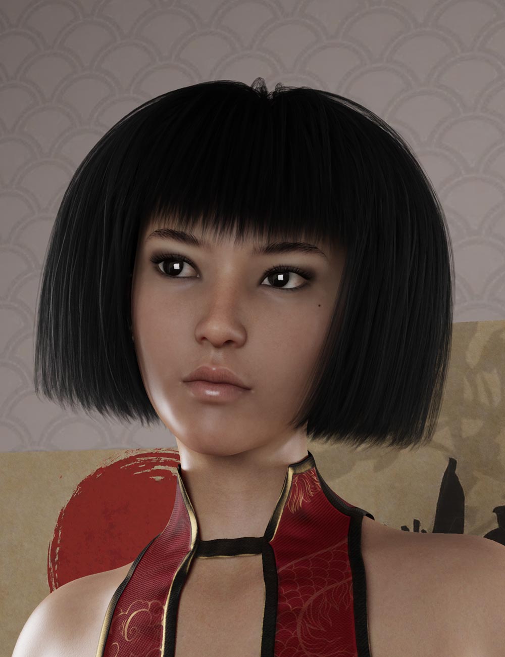 Mokoto is a classic short bob hairstyle that beautifully frames the face. It has a sleek and sophisticated look, perfect for a variety of images, from portraits to pin-ups. It comes with 24 natural and fanciful hair colors for Iray.
