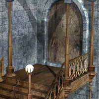 Romantic Goth styled stairs climbing aside a castle wall. Presented as parented props so you can break them apart & use them individually...build your own stairway to heaven