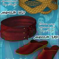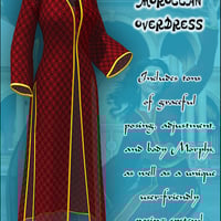 Moroccan Dreams is a beautiful complete outfit for Victoria 4 that contains an under dress, an overdress, a pair of slippers, a belt, a necklace and a pair of earrings. This set is also compatible with DAZ Studio and includes the appropriate material settings for those who prefer rendering using DAZ Studio.