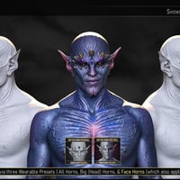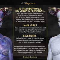 'NDFP Vega Horns' expands upon NDFP Vega Demon's concept by providing two sets of Horns for the head and face of any Genesis 9 Character.