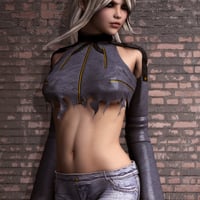 Being a Night Slayer can be a dangerous job. The Rebel shirt for Vicky 4 shows just what happens when you arent' careful. This leather top has strapped on sleeves and is ripped in half below the chest. The shirt also contains all applicable CrossDresser adjustment morphs for easy posing.