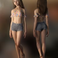 Her floral off-shoulder top brings a splash of cheerful color, like she just stepped out of a summer daydream.Paired with her comfy high-waisted shorts, she’s ready for anything - from spontaneous sidewalk dances to chill hangouts with friends.