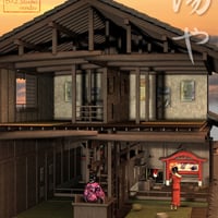 This scene has the Toba, Huroya, Kamiyui, and other shops, and includes the stream behind.