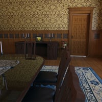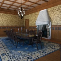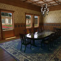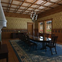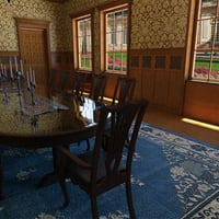 This is an Old Royal Dining Room painted with brown color, also it has a long dining table with chairs and carpet. Scented candles around the room, glass window, three (3) main doors and chandeliers. This Old Royal Dining Room is available in a number of different styles that will work well no matter what kind of style you are looking.