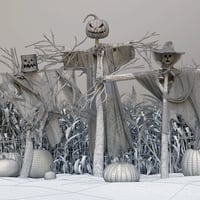 Orestes Wicked Scarecrows brings you three unique scarecrow props with deforce cloth, and four head props to stick on them! With a bucket, a pumpkin, an old hat, or a cloth sack mask, and a candle to light them up, spookiness is guaranteed! If that isn't enough, you can use about any prop you'd like as a head, Such as Orestes Epic Pumpkins Bundle! Presets include each scarecrow base with each head, making 12 total, and each has the deforce simulation pre-rendered for your ease of use.