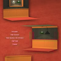 This package consists a set of restaurant wall elements. It contains a wall, wall with window, half wall, and carpet segment.