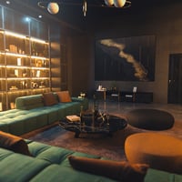 Enter the heart of upscale living with the Luxury Condo Living Room, where refined comfort meets contemporary design. Anchored by a spacious sectional sofa and framed by a stunning gold-lit shelf, this environment exudes sophistication and warmth in perfect harmony.