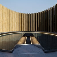 Purje is an impressive modern pavilion structure characterized by its large wooden sails, which create a striking visual impact while offering a sense of openness.