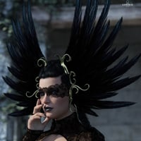 Raven Feather Headwear includes a feather headband and eye cover, with 2 Metal options and 5 different colors for feathers in Iray and 3Delight.