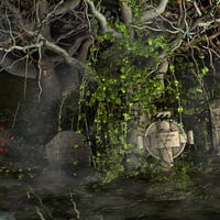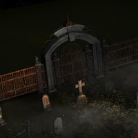 The gate stands solidly at the entrance of this cemetery. Its somber weight reminds us of the heaviness of the life trek that brought us here to where we are lain for our final resting place, or perhaps we come to remember or grieve those we have lost. Some nights, however, it might even be what we hope holds back restless ones who long to return to us...especially if their end was gilded with a polishing that left them with a need for revenge!
