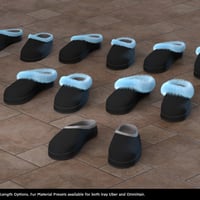 The fur materials for the house slippers can be applied separately for mix and match, and they come in two versions, Iray Uber and the new OmniHair shader.